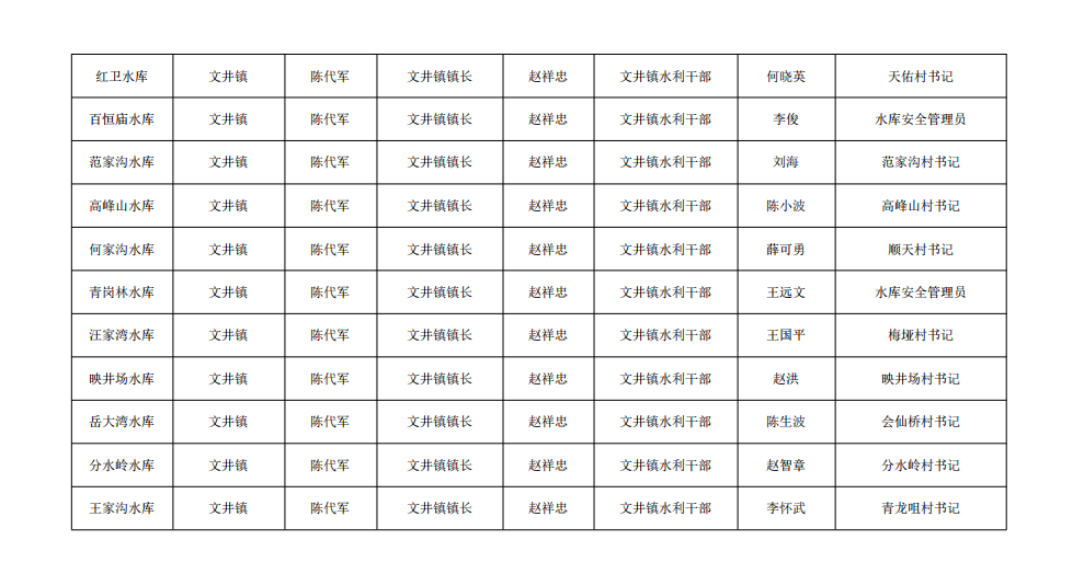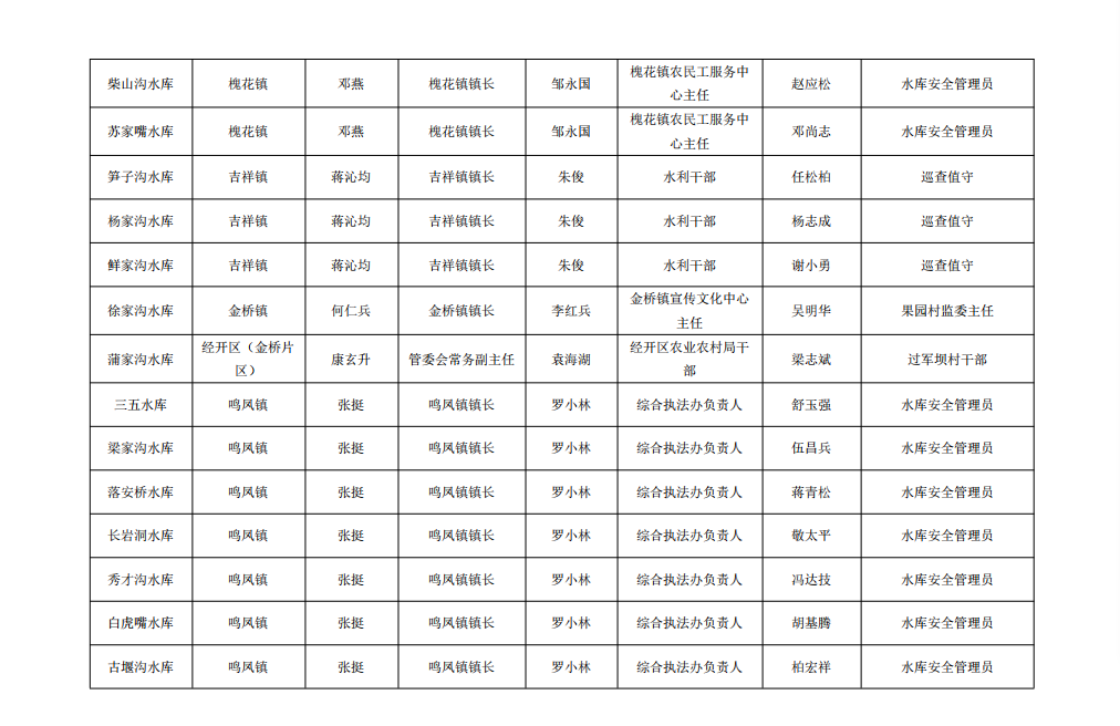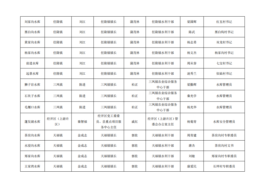 关于江河、堤防、河心洲坝、城镇、山洪灾害危险区、在建重点水利工程及水库防汛和抗旱责任人名单的通报