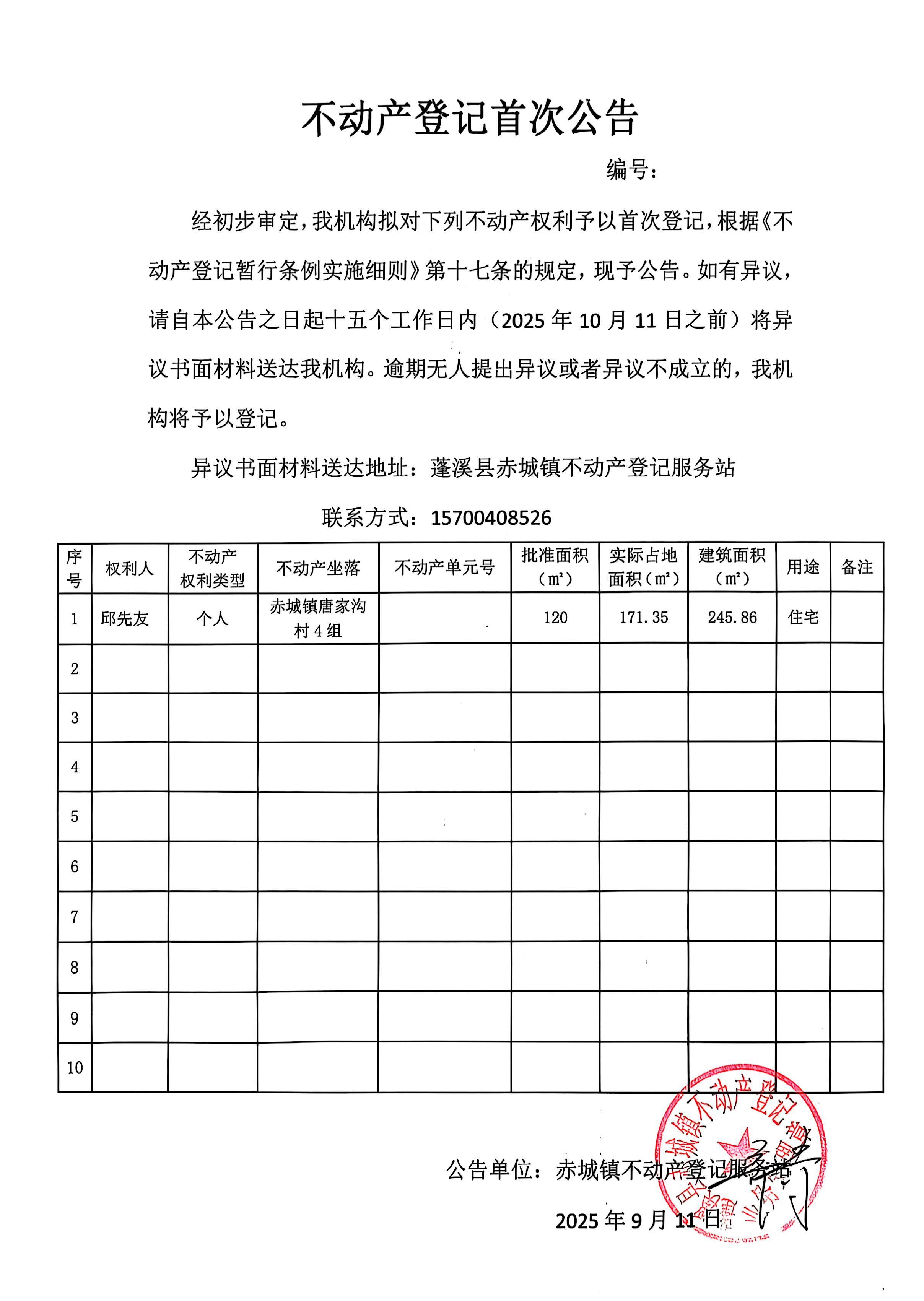首次登记公告(邱先友)