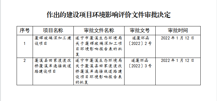 根据建设项目环境影响评价审批程序的有关规定,经审查,2022年1月12日我局共对2个建设项目环境影响评价文件作出审批决定。现将作出的审批决定情况予以公告,公告期为2022年1月18日-2022年1月26日(7个工作日)。