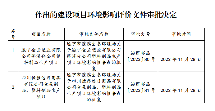 根据建设项目环境影响评价审批程序的有关规定,经审查,2022年11月28日我局共对2个建设项目环境影响评价文件作出审批决定。现将作出的审批决定情况予以公告,公告期为2022年11月30日-2022年12月8日(7个工作日)。