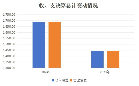 2024年度收、支总计均为1690.26万元。与2023年度相比,收、支总计各增加247.06万元,增长17.12%。主要变动原因是人员增加、项目增加。
