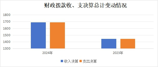 2024年度财政拨款收、支总计均为1690.26万元。与2023年度相比,财政拨款收、支总计各增加247.06万元,增长17.12%。主要变动原因是人员增加、项目增加。