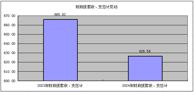2024年财政拨款收、支总计均为626.56万元。与2023年相比,财政拨款收入、支出总计各减少39.36万元,下降5.91%。主要变动原因是2024年较2023年不动产登记中心相关项目资金减少。