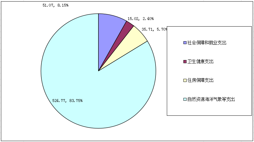 2024年一般公共预算财政拨款支出626.56万元,主要用于以下方面:一般公共服务支出0万元,占0%;社会保障和就业支出51.07万元,占8.15%;卫生健康支出15.02万元,占2.4%;住房保障支出35.71万元,占5.7%;自然资源海洋气象等支出524.77万元,占83.75%。