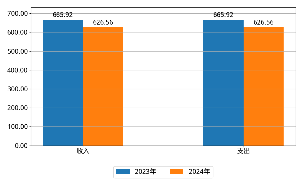 2024年度收、支总计均为626.56万元。与2023年相比,收入、支出总计各减少39.36万元,下降5.91%。主要变动原因是2024年较2023年不动产登记中心相关项目资金减少。
