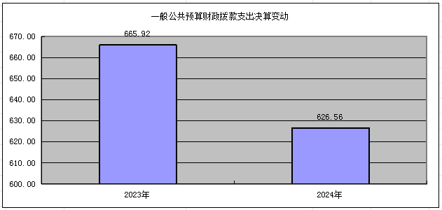 2024年一般公共预算财政拨款支出626.56万元,占本年支出合计的100%。与2023年相比,一般公共预算财政拨款减少39.36万元,下降5.91%。主要变动原因是2024年较2023年不动产登记中心相关项目资金减少。
