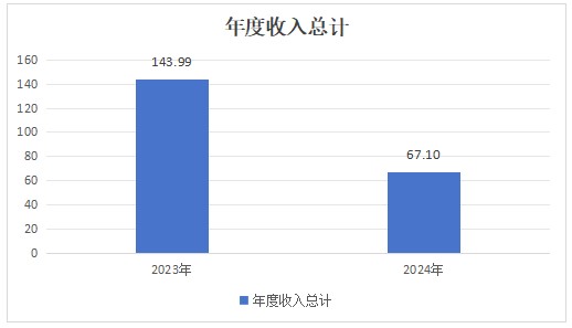 2024年度收入总计67.10万元、支出总计67.10万元。与2023年度相比,收、支总计各减少76.89万元,下降53%。主要变动原因是使用非财政拨款结余减少,其次是外出务工人数增加导致的人口流失,看病人数减少业务收入下降。