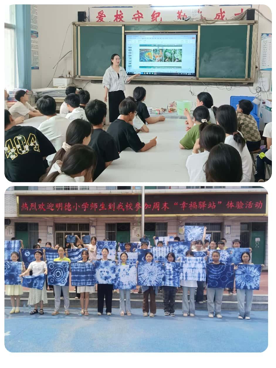 扎染活动中,一块块普通的布料经过他们的折叠、捆绑、染色,逐渐变成了独一无二的艺术品。孩子们沉浸在色彩的变幻中,欢呼着自己的奇思妙想变成了现实,脸上洋溢着自豪和喜悦的神情。