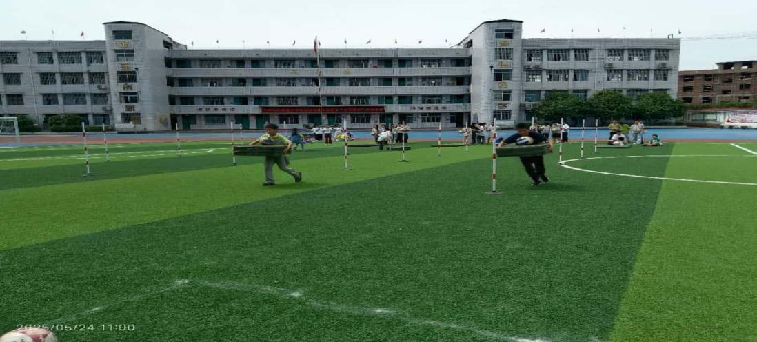 周末趣味体育游戏中,赶猪进圈和运输炸弹这两项体育游戏活动,让校园充满了欢声笑语。