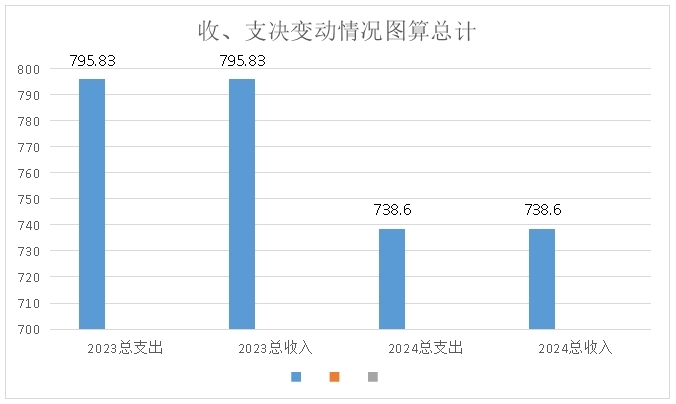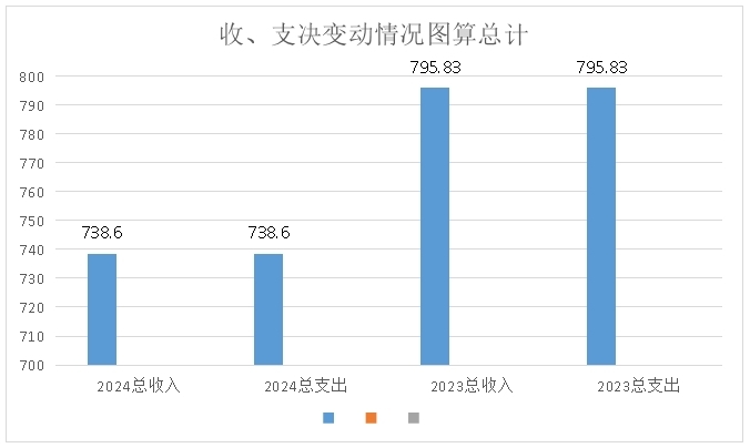 2024年度收入总计738.6万元、支出总计738.6万元。与2023年相比,收入减少57.23万元,减少7.74%;支出总计增加57.23万元,减少7.74%。主要变动原因是2024年我校教师退休。