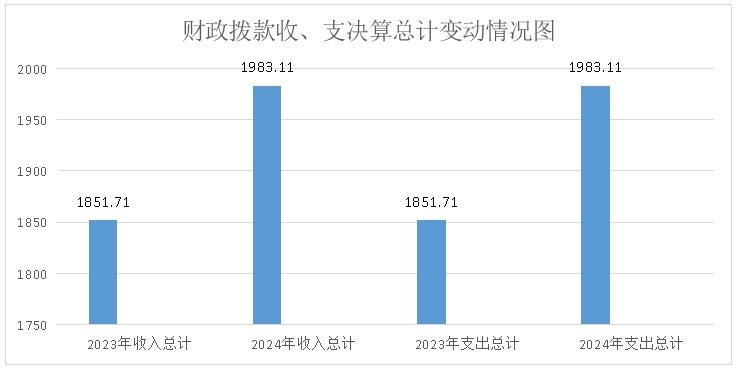2024年度财政拨款收、支总计均为1983.11万元。与2023年度相比,财政拨款收、支总计各增加131.4万元,增长7.1%。主要变动原因是学生公用经费提高,导致一般公共预算财政拨款收入增加。