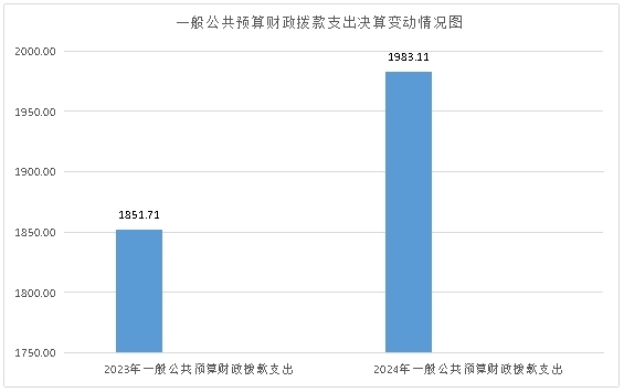 2024年度一般公共预算财政拨款支出1983.11万元,占本年支出合计的93.12%。与2023年度相比,一般公共预算财政拨款支出增加131.4万元,增长7.1%。主要变动原因是学生公用经费增加,导致一般公共预算财政拨款收入增加。