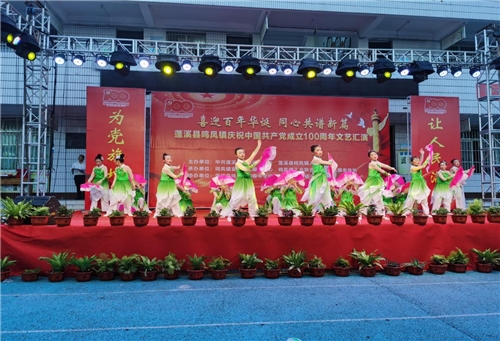 为庆祝建党100周年,6月29日晚七时三十分,由中共蓬溪县鸣凤镇委员会、蓬溪县鸣凤镇人民政府主办,鸣凤镇宣传文化服务中心,鸣凤镇工会联合会承办,以“喜迎百年华诞,同心共谱新篇”为主题的鸣凤镇庆祝建党100周年文艺汇演在鸣凤镇综合文化站拉开序幕。
