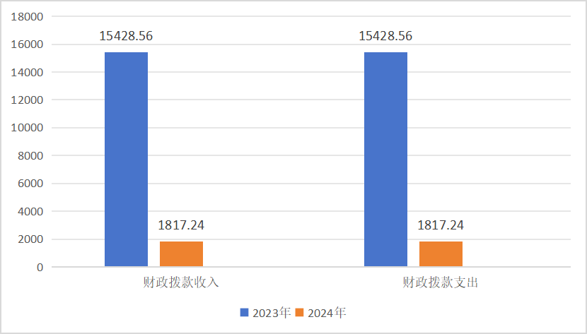 2024年度财政拨款收、支总计均为1817.24万元。与2023年度相比,财政拨款收、支总计各减少13611.32万元,下降88.22%。主要变动原因是蓬船灌区工程建设接近尾声,工程建设资金减少。