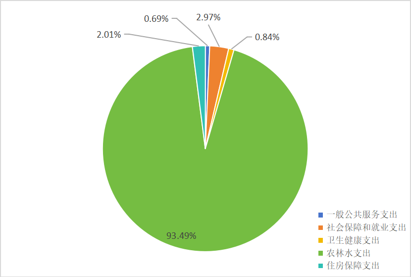 2024年度一般公共预算财政拨款支出1817.24万元,主要用于以下方面:一般公共服务支出12.48万元,占0.69%;社会保障和就业支出53.98万元,占2.97%;卫生健康支出15.21万元,占0.84%;农林水支出1699.01万元,占93.49%;住房保障支出36.57万元,占2.01%。