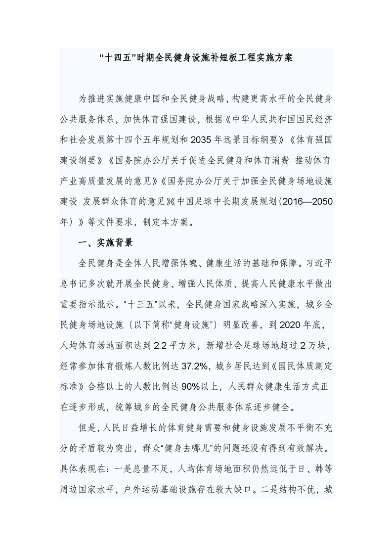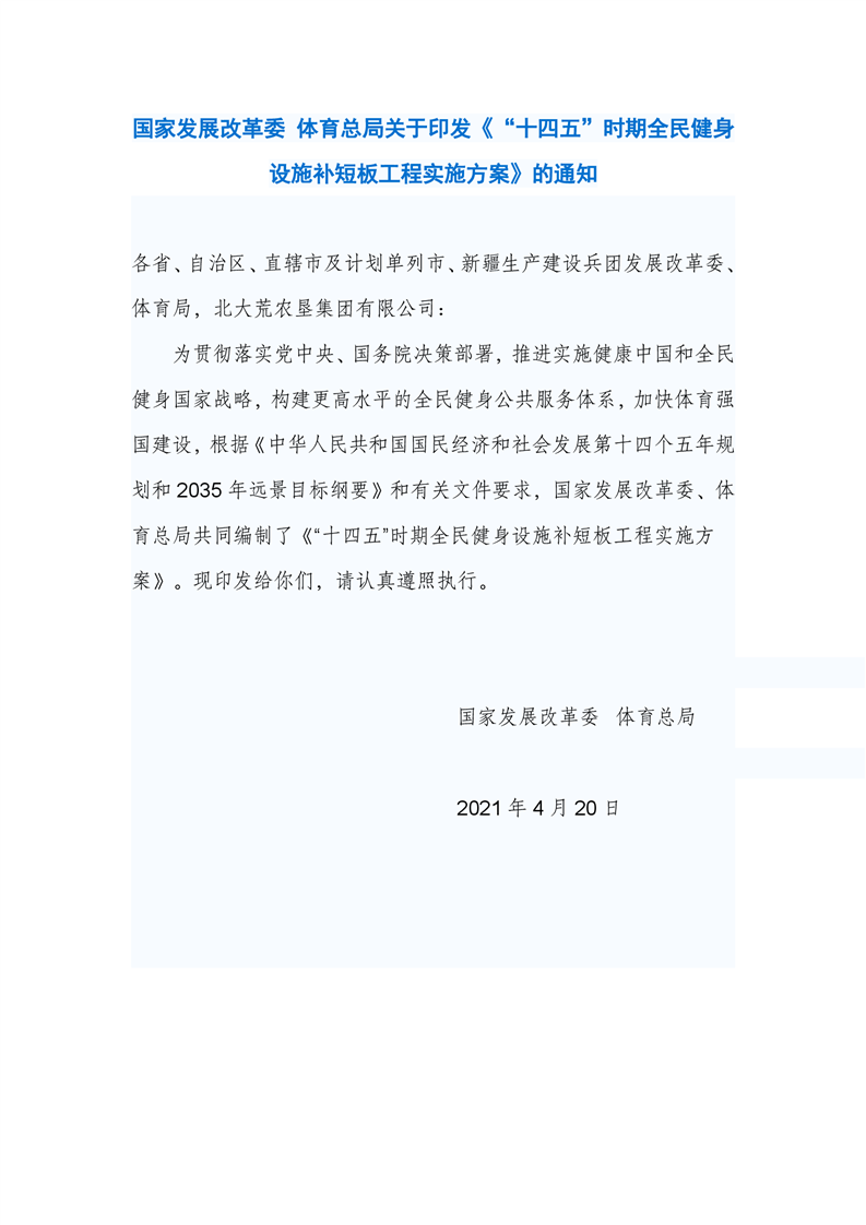 国家发展改革委体育总局关于印发《“十四五”时期全民健身设施补短板工程实施方案》的通知