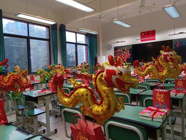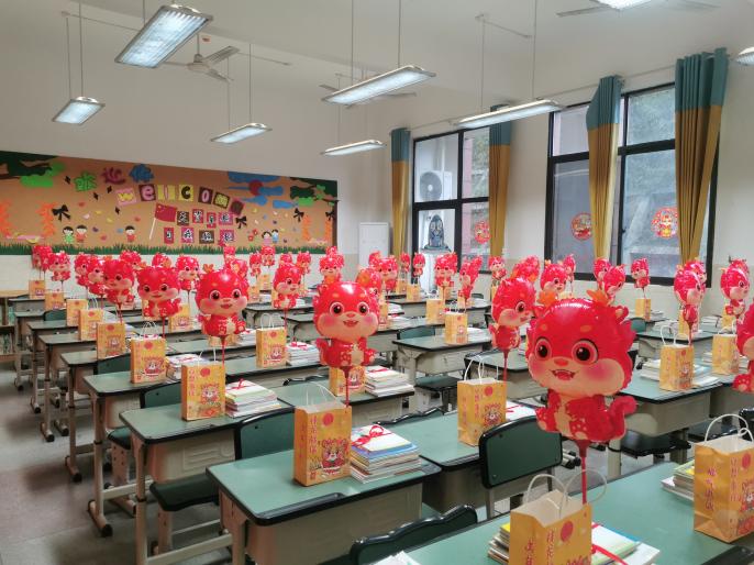 快看,细心的班导老师为每一位孩子都准备了精美的开学小礼物:有一罐罐旺仔牛奶,预示问陶娃一切都旺;有可爱的龙宝宝气球,希望问陶娃龙行龘龘、龙马精神;有漂亮实用的小文具,盼望问陶娃在新的学期学业进步、全面发展。