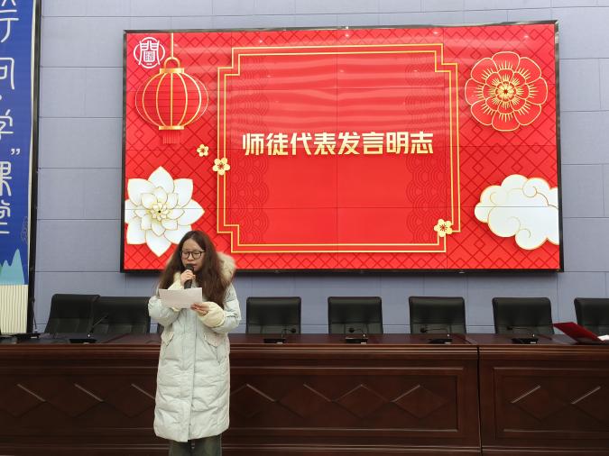青年教师是学校的未来,为充分发挥学校骨干教师、经验丰富教师的作用,通过“传、帮、带",促进青年教师专业化成长,促进教师间的业务交流,相互学习、共同进步,开学工作会的当天举行了“青蓝工程”第一期师徒结对仪式。皮琴老师和伍欣悦老师分别作为师徒代表发言明志。青蓝共进,同心协力,熠熠生辉,为学校高质量发展不断注入新活力,增添新动