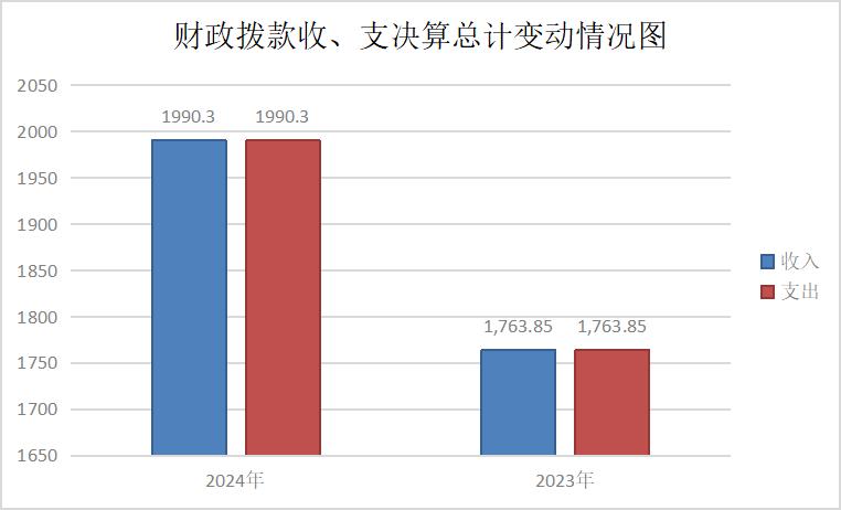 2024年度财政拨款收入总计1990.30万元,财政拨款支出总计1990.30万元。与2023年相比,收入增加226.45万元,上升11.3%,支出增加226.45万元,上升11.3%。
