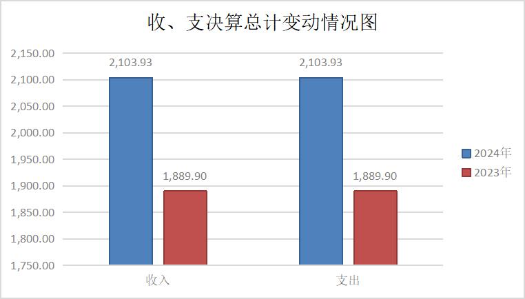 2024年度收入总计2,103.93万元,支出总计2,103.93万元。与2023年相比,收入增加214.03万元,上升10.1%,支出增加214.03万元,上升10.1%。