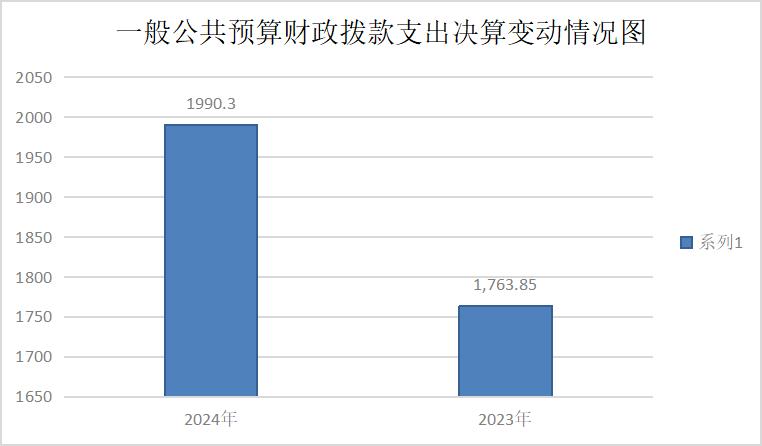 2024年一般公共预算财政拨款支出1990.30万元,占本年支出合计的94.53%。与2023年相比,一般公共预算财政拨款收入增加226.45万元,上升11.3%。主要变动原因是:1.2024年生均办公费;2.职工福利待遇提高