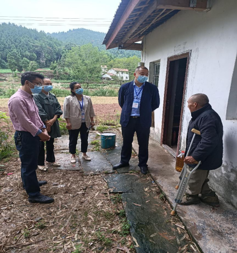 图为民政干部和乡镇一道走访独居残疾老人,送上慰问物资