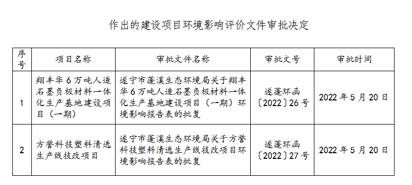 根据建设项目环境影响评价审批程序的有关规定,经审查,2022年5月20日我局共对2个建设项目环境影响评价文件作出审批决定。现将作出的审批决定情况予以公告,公告期为2022年5月20日-2022年5月30日(7个工作日)。