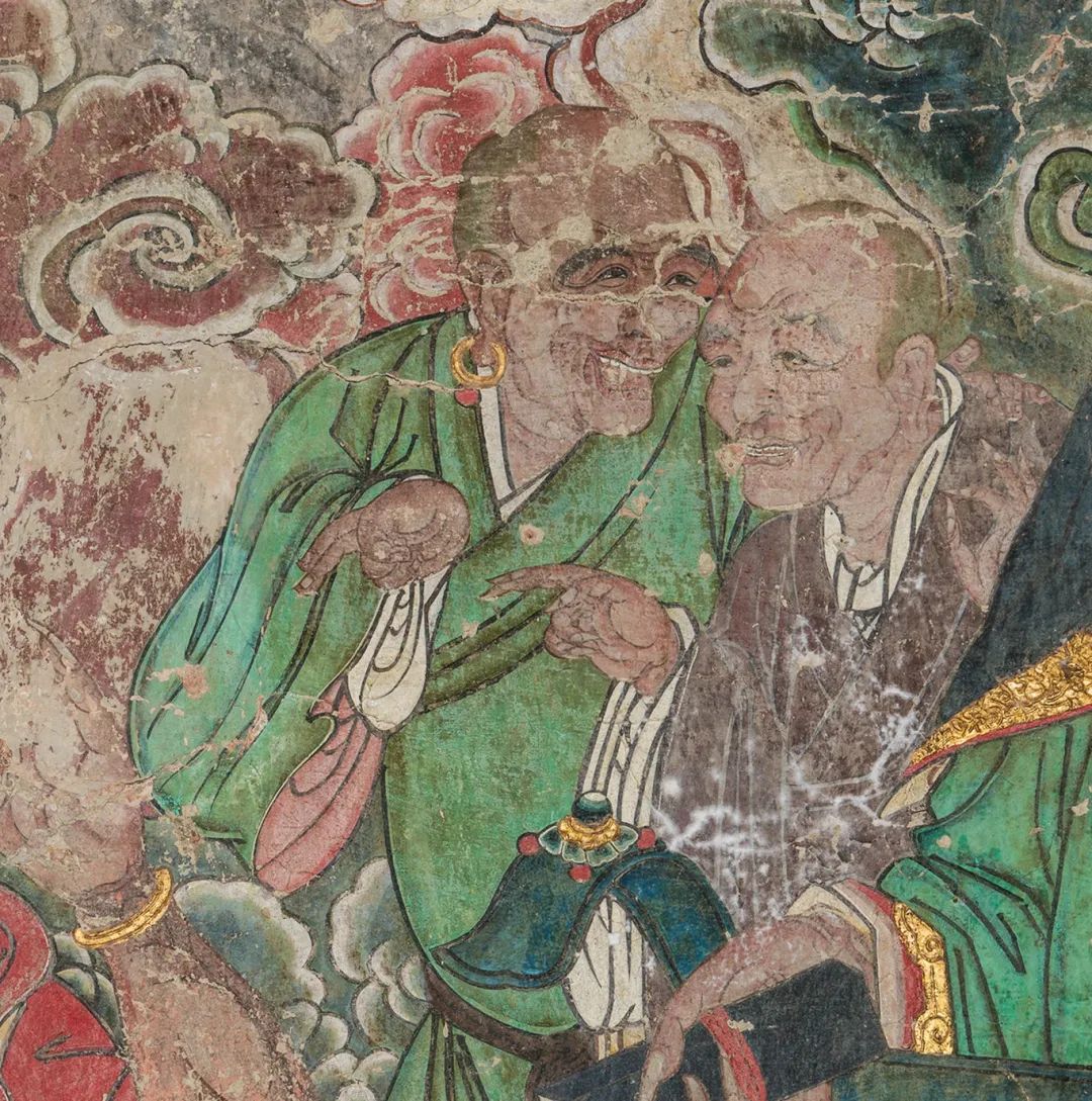 画面人物造型写实,结构准确,仙佛各具情态,细腻生动,相栩如生,充满了生活中的情趣,在这笔触清新的祥瑞世界里,展现出一个个细腻真实活生生的红尘众生百态图!