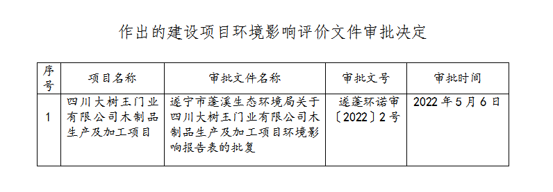根据建设项目环境影响评价审批程序的有关规定,经审查,2022年5月6日我局对1个建设项目环境影响评价文件作出审批决定。现将作出的审批决定情况予以公告,公告期为2022年5月9日-2022年5月17日(7个工作日)。