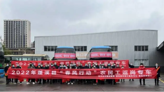 据悉,2022年“春风行动”由县人社局统筹,县农民工服务中心具体负责,县交运局、县总工会、团县委、县妇联、县卫健局通力配合、积极联动,确保农民工安全顺利返岗。2022年专车行动是从2月5日持续开展至2月25日,预计将发出52辆返岗专车,为2600余名农民工提供“出门进车门,下车进厂门”的“点对点”服务,除开行广东方向外,还适时增开福建、安徽、浙江、上海等地,截至目前已经向广东、安徽、重庆等地专车输送农民工538人,极大满足疫情期间我县农民工外出务工需求,引导农民工有序流动,合理疏导农民工有序返岗。