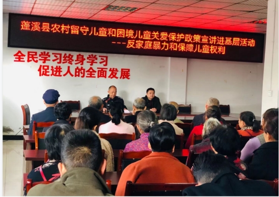 为加强农村留守儿童和困境儿童政策法规宣传力度,全力推动儿童关爱保护保障工作上新台阶,全面提升我县儿童关爱保护工作水平,县民政局会同司法、公安、法院、关工委、妇联、团委等部门遴选专家学者组成儿童关爱保护政策宣讲团,在全县范围内扎实开展农村留守儿童和困境儿童关爱保护政策宣讲进基层活动。4月,儿童关爱保护政策宣讲团到镇进村,到蓬南镇、群利镇、金桥镇、经开区等乡镇,对农村留守儿童和困境儿童,儿童监护人、儿童督导员、儿童主任等进行宣讲。本次宣讲的主要内容涉及农村留守儿童妥善监护照料和更好关爱保护、孤儿和事实无人抚养儿童保障、残疾儿童康复救助等社会救助以及社会福利政策和《中华人民共和国民法典》、《未成年人保护法》、《预防未成年人犯罪法》、《收养法》等法律法规。