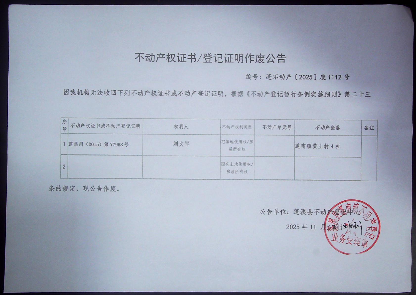 作废登记公告(刘文军)