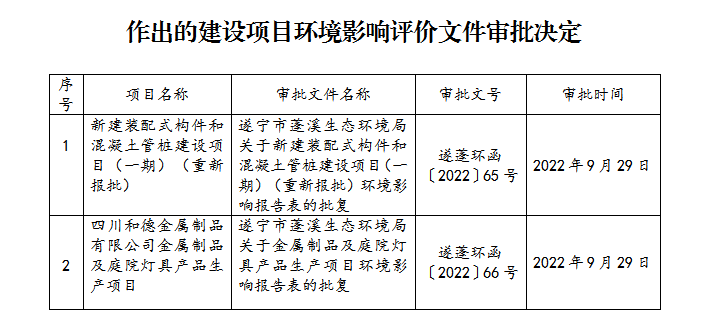 根据建设项目环境影响评价审批程序的有关规定,经审查,2022年9月29日我局对2个建设项目环境影响评价文件作出审批决定。现将作出的审批决定情况予以公告,公告期为2022年9月30日-2022年10月13日(7个工作日)。
