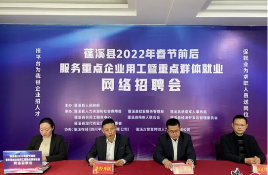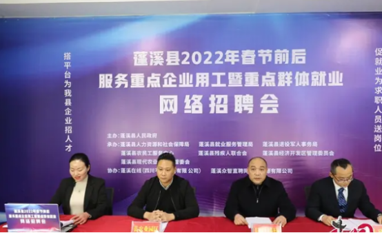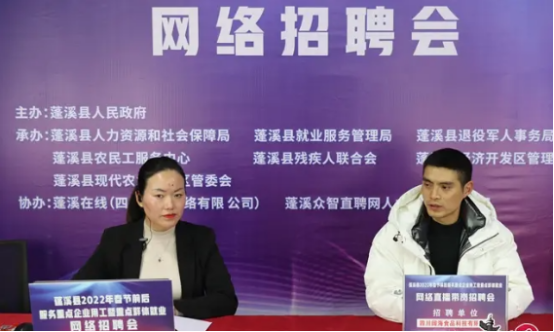 2月10日,由蓬溪县人民政府主办,蓬溪县人力资源和社会保障局、蓬溪县就业服务管理局等单位共同承办的——蓬溪县2022年春节前后服务重点企业用工暨重点群体就业网络招聘会正式开播。活动现场,10家用人单位人力资源负责人变身“主播”,推荐单位招聘岗位。