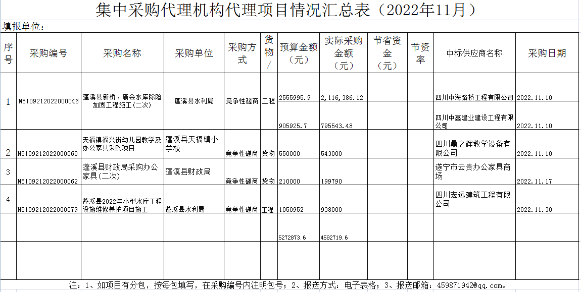 蓬溪县2022年11月集中采购采购项目汇总表(一)