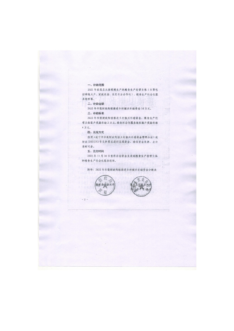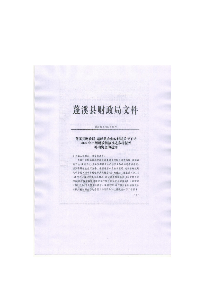 关于下达2022年市级财政衔接推进乡村振兴补助资金的通知 蓬财农(2022)39号