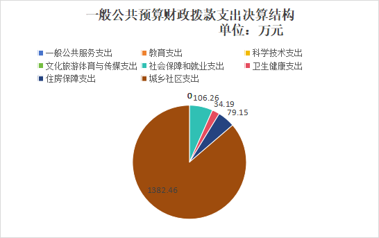 2024年度一般公共预算财政拨款支出1602.05万元,主要用于以下方面:一般公共服务支出0万元,占0%;教育支出0万元,占0%;科学技术支出0万元,占0%;文化旅游体育与传媒支出0万元,占0%;社会保障和就业支出106.26万元,占6.63%;卫生健康支出34.19万元,占2.14%;住房保障支出79.15万元,占4.94%;城乡社区支出1382.46万元,占86.29%。