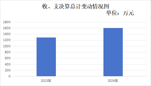 2024年度收、支总计均为1602.05万元。与2023年度相比,收、支总计各增加318.02万元,增长24.77%。主要变动原因是项目增加和人员变动。
