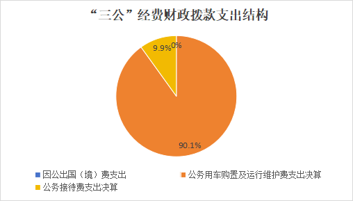 2024年度“三公”经费财政拨款支出决算中,因公出国(境)费支出决算0万元,占0%;公务用车购置及运行维护费支出决算15.50万元,占90.1%;公务接待费支出决算1.71万元,占9.9%。具体情况如下: