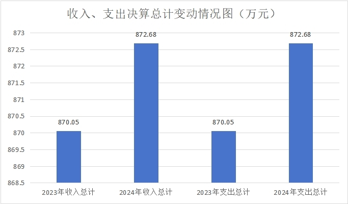 2024年度收、支总计均为872.68万元。与2023年度相比,收、支总计各增加2.63万元,增长3%。