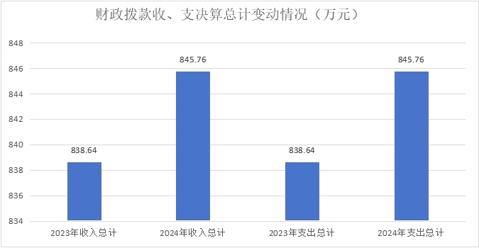 2024年度财政拨款收、支总计均为845.76万元。与2023年度相比,财政拨款收、支总计各增加7.12万元,增长8%。
