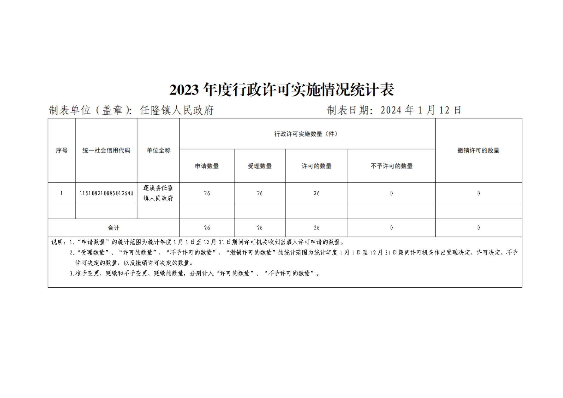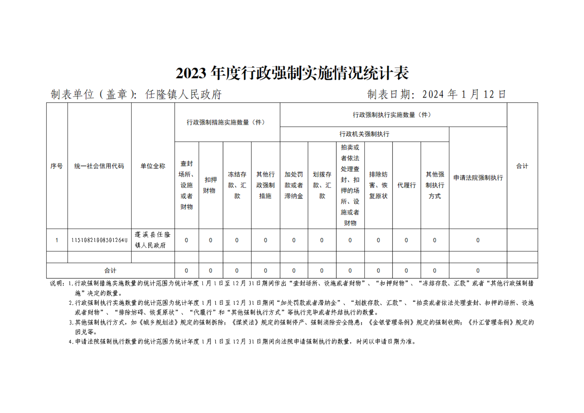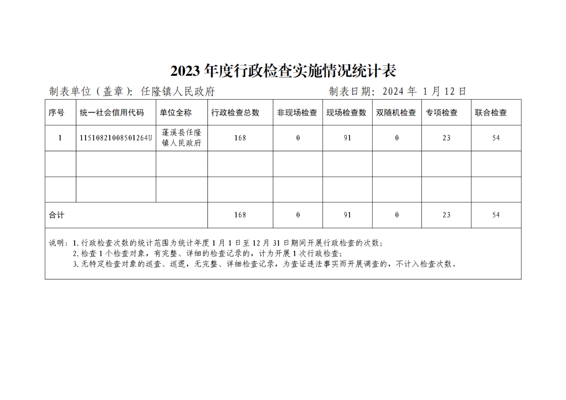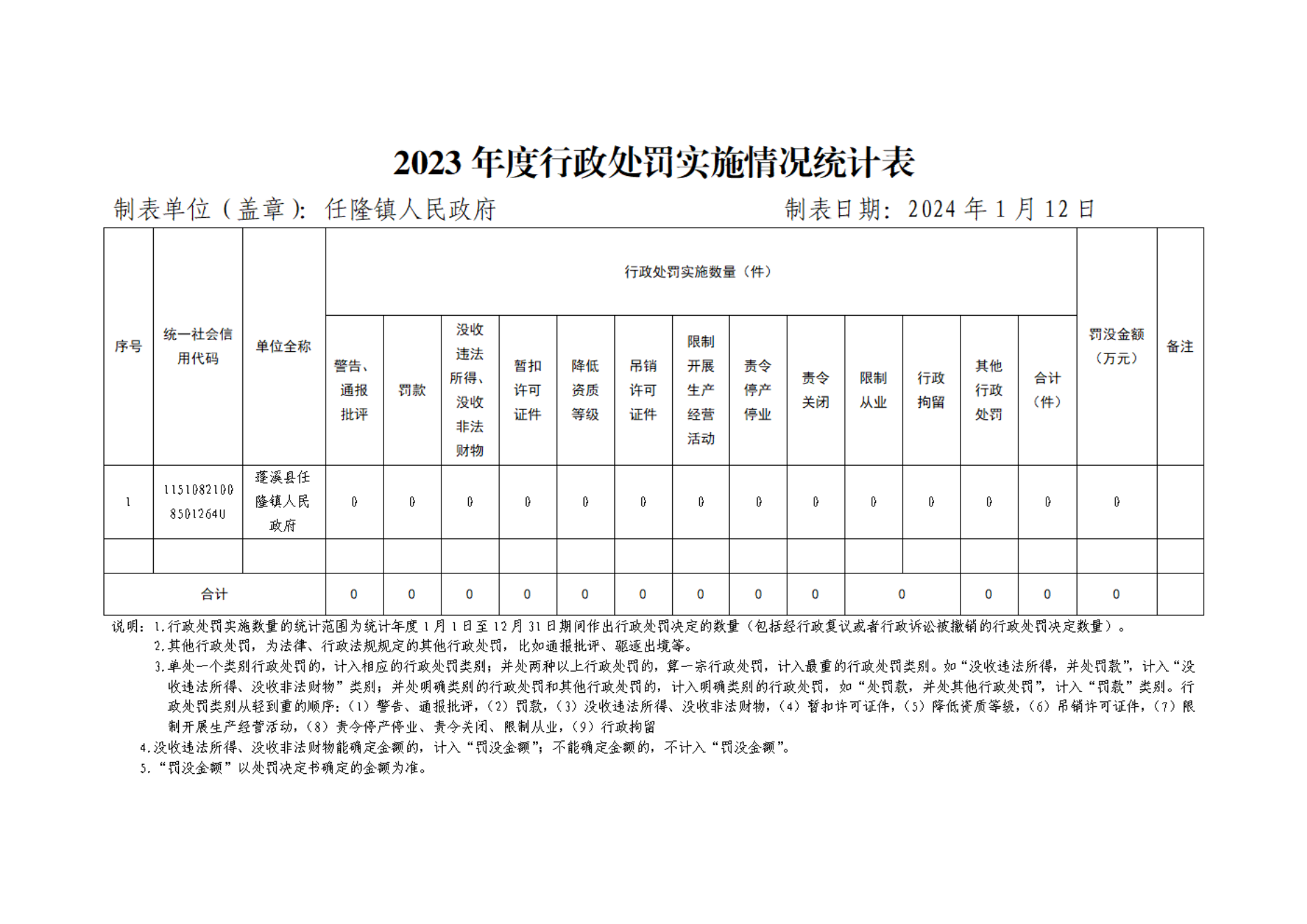 2023年度蓬溪县任隆镇人民政府实施行政许可、行政处罚、行政强制和行政检查等情况公示