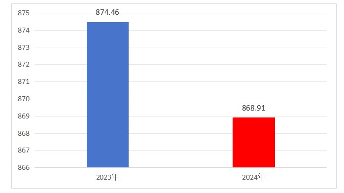 2024年度收、支总计均为868.91万元。与2023年度相比,收、支总计各减少5.55万元,下降0.63%。主要变动原因是减少使用非财政拨款结余。