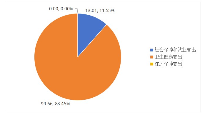 2024年度一般公共预算财政拨款支出112.67万元,主要用于以下方面:社会保障和就业支出13.01万元,占11.55%;卫生健康支出99.66万元,占88.45%;住房保障支出0万元,占0%。