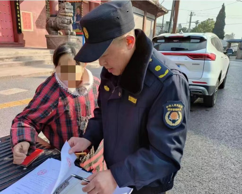 执法人员督促清理占道经营的坝坝茶