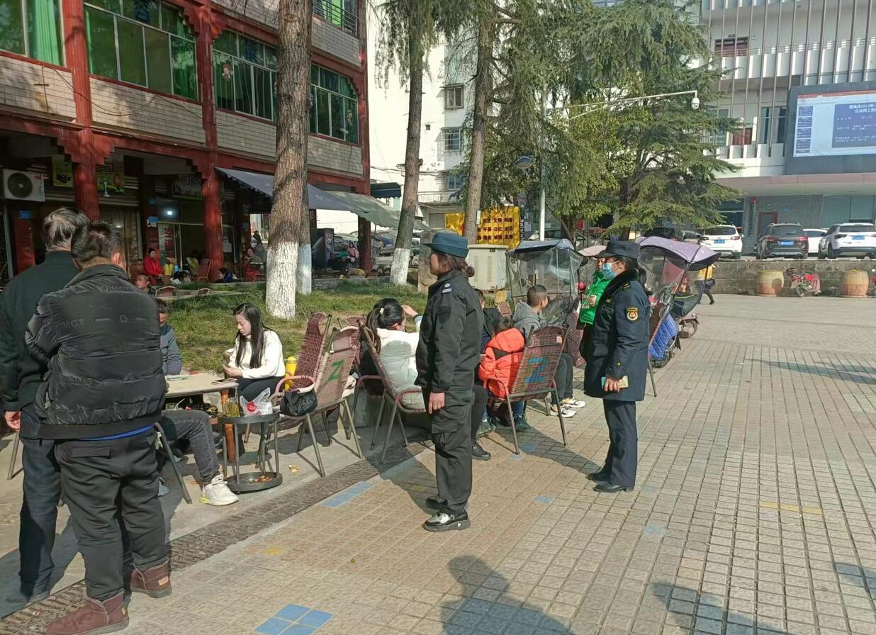 奎阁广场位于蓬溪县城中河街,因清代古迹“奎阁”而得名,是国家重点文物保护单位。奎阁广场作为蓬溪县一张响亮的名片,不仅是市民茶余饭后休闲的好去处,更是展现城市管理品质好坏的重要地标。随着春节来临,天气回暖,奎阁广场“坝坝茶”占道经营开始冒头,不仅严重影响市民休闲和通行,乱摆乱设后还留下一地垃圾,造成周边环境污染,带来安全隐患。