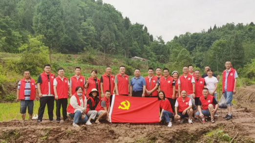 近日,遂宁市人民政府办公室和鸣凤镇的党员干部志愿者来到鸣凤镇田沟村开展“践行初心使命·助力乡村振兴”主题党日活动,为当地村集体秧田提供插秧服务,助力粮食生产。