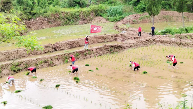 今年,为了盘活撂荒地,让沉睡的土地重新焕发新的生机,鸣凤镇田沟村在上级指导下盘活了200亩撂荒地,种植水稻、红薯等粮食作物,发展壮大村级集体经济。党员志愿者来到田间地头助力插秧,不仅及时缓解了村里劳动力缺失问题,也为水稻播种抢抓了有利时机。