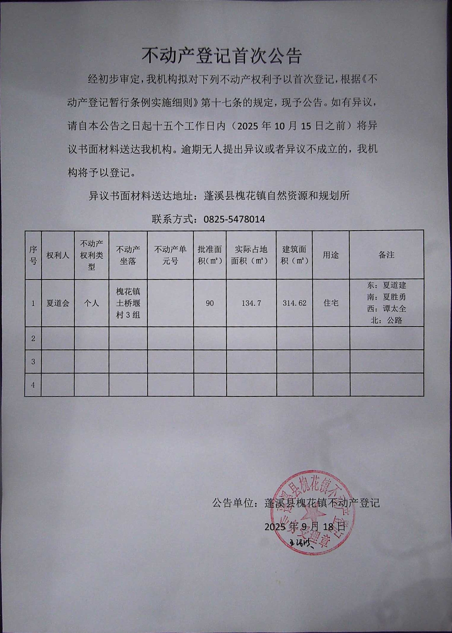 首次登记公告(夏道会)