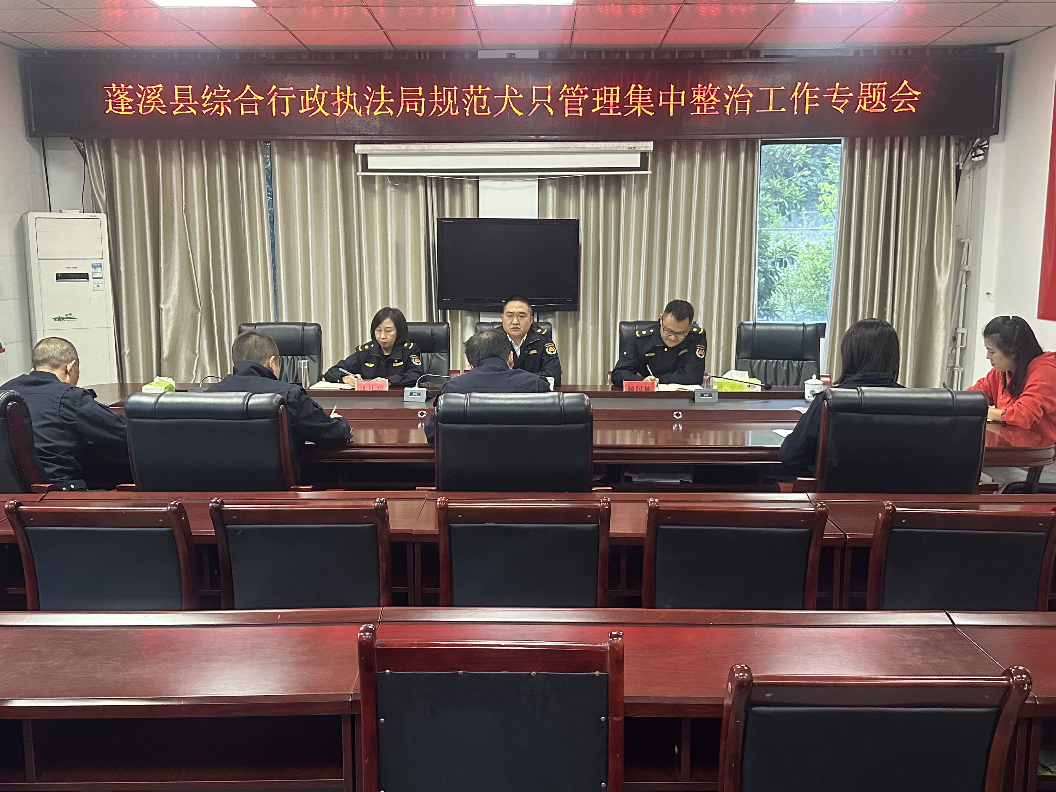 10月18日,蓬溪县综合执法局召开规范犬只管理集中整治工作专题会。会议由局党组书记陈成主持,局长杨国栋,副局长刘世琼,各股、室、队、中心负责同志参加会议。会议通报了崇州犬只伤人事件情况,对规范犬只管理集中整治行动做了安排部署。